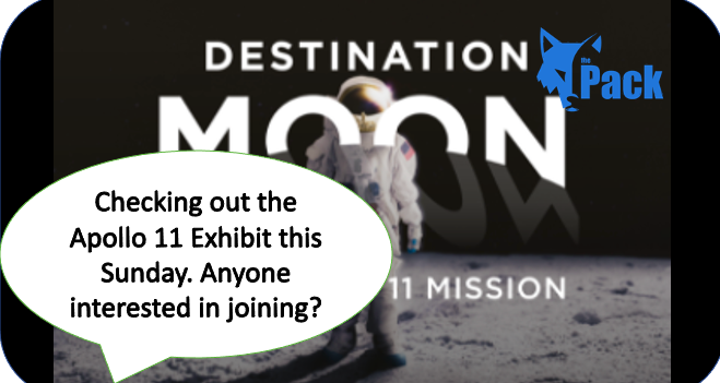 Happy Hour Running Biking Cycling Dining Corn Hole Yoga Football Museums Art Gallery Shopping. Coffee Break Book Club Music Beach Arts & Crafts Dance Ski/Snowboard Surfing Tennis Basketball Golf Road trip